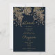 Convite de Detalhes do Programa de casamento de renda floral glitter dourado e azul naval elegante e sofisticado é perfeito para casais que procuram um toque simples e lindo para o seu grande dia. Esta moldura de flor glitter dourada vintage envolve os detalhes do seu casamento. Dê aos seus convidados um primeiro vislumbre maravilhoso do seu casamento a ser realizado, este convite será uma adição fantástica para os eventos do seu casamento. Todos os desenhos são impressos.