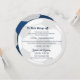 A celebração da bola de futebol continua, detalhes e cartões de informação para elogiar nossos convites esportivos ao Bar Mitzvah. Gradiente azul escuro clássico com bola de futebol prateado e texto editável em azul escuro na frente da placa.