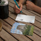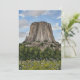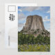 Este postal apresenta um retrato de aquarela do Monumento Nacional da Torre Devils em Wyoming.