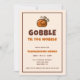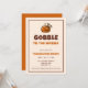 Prepare-se para se deliciar com o nosso Convite Divertido para o Jantar de Ação de Graças "Gobble Til You Wobble"! Este design adorável e humorístico apresenta um peru de desenho animado fofo, estabelecendo o tom perfeito e leve para a sua refeição de feriado. Com sua tipografia lúdica e cores quentes de outono, este convite certamente trará um sorriso ao rosto dos seus convidados antes mesmo que eles cheguem. Este convite para o jantar de Ação de Graças é ideal para uma reunião familiar divertida e casual ou uma celebração do Dia de Ação de Graças entre amigos. A frase "gobble til you wobble" é uma maneira clássica e engraçada de deixar todos animados para a deliciosa comida que está por vir.