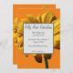 Um quadro de prata na moda e texto em fotos de margarida de orvalho e convite de aniversário laranja.