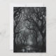 Uma floresta assombrada e escura é o pano de fundo para este convite do Partido das Bruxas, com detalhes em um quadro preto e cinza. A parte de trás mostra a floresta assombrada, sem a moldura.