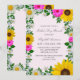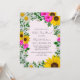 Convite rústico para o Dia das Mães country com girassóis vibrantes, margaridas brancas tradicionais e flores cor-de-rosa em um fundo rosa claro com acentos de respiro de bebê e folhagens botânicas