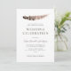 Convide seus amigos e família para um casamento no final de semana de Ação de Graças com estes convites únicos, no entanto formais, para o dia do casamento. Eles apresentam um layout de texto aberto com uma pena de peru desbotada flutuando acima dos detalhes do texto. No verso está um marrom-claro para complementar a frente do convite.