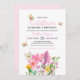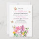 Convites de festas de aniversários temáticos de flores silvestres doces e de verão. Apresentando lindas flores cor-de-água, brancas e amarelas, e borboletas de cor pastel.