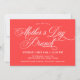 Um convite de Brunch, Dia de as mães elegante e feminina, em coral brilhante, com encantadores sotaques de texto caligrafia e texto branco. O lado inverso do convite tem um padrão de listras brancas e corais correspondente. Personalize com os detalhes do evento.