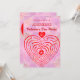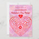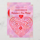 Um fundo floral rosa com um labirinto em vermelho. A introdução diz: Você está convidado para uma festa de Dia de os namorados incrível! Este é um design de excelente para festas infantis no fim de semana do Dia de os namorados ou Dia de os namorados. Se você tem um bebê querido que estava nascer no 14, um texto adicional pode ser adicionado para dizer a todos quantos anos sua filha terá. O labirinto em forma de coração é um quebra-cabeça funcional que vai adicionar diversão aos jogos que as crianças jogam.