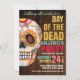 Madeira russa e açúcar de aquarela convite para festa de Halloween. Este convite apresenta o dia de folga dourada da letra morta.
