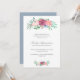 Convite para o dia de um professor elegante com uma plantação floral composta por rosas pastel cor-de-rosa e mauve no topo e no fundo. Os detalhes do evento estão em uma cinza média com o título do evento em uma fonte de script. O dorso é um azul empoeirado e pode ser mudado para qualquer cor que desejar. Este design floral é excelente para uma celebração no primavera.