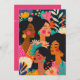 Um belo grupo de mulheres de diferentes culturas com um tema floral em cores brilhantes.