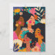 Um belo grupo de mulheres de diferentes culturas com um tema floral em cores brilhantes.