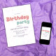 Com um unicórnio caprichoso em aquarela e um arco-íris suave em tons pastel, rosa e roxo, confetes coloridos e detalhes delicados de lua e estrelas, este convite define o tom perfeito para uma festa de aniversário temática de unicórnio para meninas. Seja uma celebração de aniversário infantil ou uma festa sonhadora de unicórnio, o design fofo e encantador irá despertar a emoção e o prazer entre os convidados. Prepare-se para uma celebração cheia de arco-íris e magia — personalize seus convites hoje!