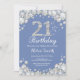 Convite para aniversário de 21 anos. Diamante de Rhinestone Azul e Prateado. Convidado Elegante Birthday Bash. Aniversário Adulto. Mulheres Aniversário. Homens Aniversário. Para mais personalização, clique no botão "Personalizar" e use nossa ferramenta de design para modificar este modelo.