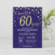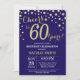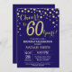 60º Convite de Aniversário com Fundo de Diamante Azul e Dourado de Marinho. Dourado Confetti. Aniversário Adulto. Homens ou Mulheres Aniversário.