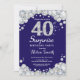 Convite para aniversário de 40 anos surpresa. Marinho Azul e Silver Rhinestone Diamond Red Background. Convidado Elegante Birthday Bash. Aniversário Adulto. Mulheres Aniversário. Homens Aniversário. Para mais personalização, clique no botão "Personalizar" e use nossa ferramenta de design para modificar este modelo.
