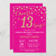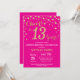 Convite Diamante de 13 de aniversário, rosa quente e Doura