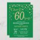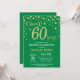 60º Convite de Aniversário com Fundo de Diamante Verde e Dourado. Dourado Confetti. Aniversário Adulto. Homens ou Mulheres Aniversário. Para mais personalização, clique no botão "Personalizar" e use a ferramenta design para modificar este modelo.