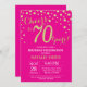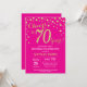 Convite de aniversário de 70 com fundo de diamante rosa quente e brilhante Dourado. Dourada Confetti. Aniversário Adulto. Homens ou Mulheres Aniversário. Para mais personalização, clique no botão "Personalizar" e use nossa ferramenta de design para modificar este modelo.