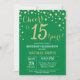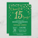 Convite de Aniversário de 15 com Fundo de Diamante Verde e Dourado. Dourado Confetti. Aniversário de criança. Adolescente Adolescente ou Garota Aniversário. Para mais personalização, clique no botão "Personalizar" e use a ferramenta design para modificar este modelo.