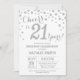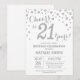 Convite para aniversário de 21 anos com o Fundo do Diamante Glitter Silver. Prata Confetti. Aniversário Adulto. Homens ou Mulheres Aniversário. Para mais personalização, clique no botão "Personalizar" e use nossa ferramenta de design para modificar este modelo.