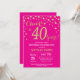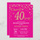 Convite Diamante de aniversário de 40 anos rosa e Dourado