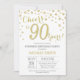 Surpreenda o Convite de Aniversário de 90 com Dourado Fundo de Diamante Glitter. Dourado Confetti. Aniversário Adulto. Homens ou Mulheres Aniversário.