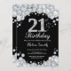 Convite para aniversário de 21 anos. Fundo do Quadro de Diamantes do Silver Rhinestone. Convite para o Elegante Birthday Bash.Preto & Branco. Aniversário Adulto. Aniversário das mulheres. Homens Aniversário.
