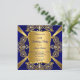 Qualquer Festa de aniversário de idade Imagens de Óculos Dourados Real Azul. Ornamentado Elegante Jewel Gem Ouro Festa de aniversário Dourada camada Dourada. Personalize com seus próprios detalhes.