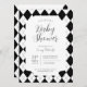 Convite de bebê em xadrez preto e branco clássico e atemporal. Estilos e layout de fontes personalizáveis, apresentando um fundo com padrão simples e formas de diamante geométricas limpas. Perfeito para convites de chá de bebê unissex, convites de chá de bebê masculino e convites de chá de bebê clássicos.