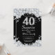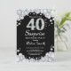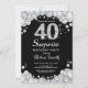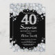 Convite para aniversário de 40 anos surpresa. Fundo do Quadro de Diamantes do Silver Rhinestone. Convite para o Elegante Birthday Bash. Preto e branco. Aniversário Adulto. Aniversário das mulheres. Homens Aniversário. Para mais personalização, clique no botão "Personalizar" e use a ferramenta design para modificar este modelo.