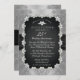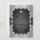 Convite de aniversário de casamento, brilhante e sofisticado, com 25 de na moda, com fundo preto e prateado de aparência e faixa preta de satin impressa com forma de coração, lágrima e diamantes impressos redondos, dispostos em forma retangular arredondada. A fita falsa de cetim preto e o fundo preto e prateado de renda continuam atrás para um aspecto polido e sofisticado. Design original por Holiday Hearts Design (todos os direitos reservados). Note que todos os embelezamentos estão impressos.
