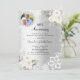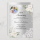 Para um elegante e romântico 60º aniversário de casamento. Um fundo de aparência pura prateada decorado com flores brancas, rosas, diamantes falsos e rendas brancas. Personalize e adicione sua foto, nomes e detalhes.
