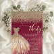 Vestido de ouro elegante e diamantes de ouro em fundo vermelho.