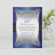 Convite de aniversário de casamento de 65 anos brilhantemente sofisticado e elegante com fundo impresso com aparência de cetim azul e fita de cetim preta com diamantes e fechos de canto de spinel azul. A fita preta falsa e o fundo de safira em gradiente continuam na parte de trás para um visual sofisticado e polido. Design original de Holiday Hearts Designs (todos os direitos reservados). Por favor, note que todos os enfeites são impressos.