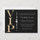 Este convite de festa personalizado apresenta um tema glamoroso e elegante em um fundo preto. O título VIP é impresso em um design de brilho dourado à esquerda. Uma faixa de diamantes separa a área de texto. É perfeito para uma festa de aniversário, chá de noiva ou outra celebração fabulosa.