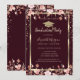 Convite Diamantes Ouro Grad Cap Flores Vinho Formatura
