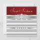 Convite elegante e brilhante para festa de aniversário de dezesseis anos com diamantes brancos e coração vermelho de rubi.