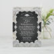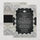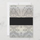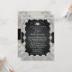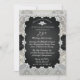 Convite de aniversário de casamento de 75 anos brilhantemente sofisticado e elegante com sobreposição de aspecto de renda sobre um fundo com aparência de ouro branco e fita de cetim preta impressa com diamantes em forma de coração, lágrima e redondos dispostos em uma moldura retangular arredondada. A fita de cetim preta e o fundo de ouro branco e renda continuam no verso para um visual sofisticado e polido. Design original de Holiday Hearts Designs (todos os direitos reservados). Por favor, note que todos os enfeites são impressos.