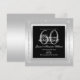 Desenho feminino, chique, moderno, romântico e sofisticado para eventos de aniversário de casamento de casal de 60 anos. Sexagésimo aniversário fabuloso, elegante e glamoroso. Com uma bela moldura de decoração cintilante e brilhante em diamantes de joias de rhinestone prateado estampados em um fundo gradiente prateado glamoroso, os detalhes do seu evento estão no centro do cartão com uma borda preta e prateada. Todo o texto, tamanho e cor da fonte são totalmente personalizáveis. São convites lindamente projetados com cores prateadas e pretas estilosas e fofas. Perfeito para eventos de primavera/verão, mas pode ser usado em qualquer estação. Um design moderno e sofisticado com um visual romântico sofisticado. Se desejar ajuda para personalizar seu produto, entre em contato comigo através da minha loja e ficarei muito feliz em ajudá-lo. Este exemplo é para 60 anos, mas