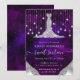 Vestido Silver Diamante Elegante com Luzes de Cordas de Boque de Prata e bordas de Glam Glitter em um fundo de estrelas de fantasia roxa e azul