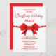 You're invited to our Christmas Holiday Party Invitation, features all red font, and a red satin bow. This classy Holiday party invitation is simple, but elegant to announce your festive day of gathering, fun, and celebration. With Christmas right around the corner, be sure to get your invitations today.
