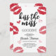 Celebre o último sanduíche da noiva com este divertido e festivo "Beije a Senhorita Adeus" Convite Festa de solteira! Perfeito para aqueles que querem fazer uma celebração memorável e brincalhona, este convite dá o tom para uma noite inesquecível. Quer você esteja planejando uma fuga de fim de semana selvagem ou uma noite de chic fora, esta design única traz uma mistura de humor e elegância para seu partido. O texto ousado e vibrante "Beije a Senhorita Adeus" é emparelhado com um layout de na moda que certamente atrai a atenção. Esse cartão de alta qualidade pode ser personalizado com todos os detalhes do evento, incluindo informações sobre data, hora, local e RSVP. É fácil fazer este convite exclusivamente seu, garantindo que seus convidados ficarão animados pelas festividades que se avizinham. Feito com materiais de alto nível e disponíveis em vários acabamentos, este convite é tão divertido quanto funcional. O elegante e na moda é perfeito para noivas modernas que querem fazer uma declaração enquanto mantêm as coisas clásicas. Quer você esteja hospedando um glamouroso dia de terno ou uma divertida noite de dança, este convite para solteiros é a forma perfeita de estabelecer o palco para uma celebração fantástica. Torne inesquecível o voo final da noiva, enviando estes convites divertidos e chicos. Peça a sua hoje e prepare-se para uma festa de solteira que todos se lembrarão!