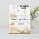 Este belo convite de aniversário inclui caminhões de construção de aquarelas e balões coloridos.