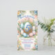 Um convite de download digital encantador para uma festa de aniversário temática de Páscoa, perfeito para crianças e qualquer pessoa que adore este estilo. O convite exibe uma deliciosa variedade de ovos de Páscoa e flores, adornados em tons pastel suaves. Seu design delicioso e atraente certamente criará memórias duradouras para seus convidados.