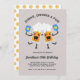Um convite divertido para a sua próxima festa de aniversário. Design apresenta dois amigos felizes com caneca de cerveja. Adicione o texto personalizado e os detalhes da festa. A parte de trás apresenta um padrão de bolas de picles. Excelente para uma festa de aniversário de piquenique adulta, reunião de fim de semana de picleball, partida ou diversão diária. Perfeito para aqueles que adoram beber e beber ou apenas divertir-se um pouco.