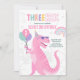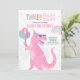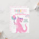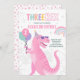 Convite Dinossaur Três Rex aniversário de 3 anos Pink T-Re