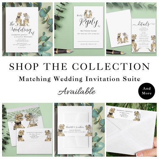 Convite Dinossaur Wedding T-Rex Bride and Groom