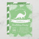 Divirta-se no próximo aniversário do seu filho! Esses convites impressionarão seus hóspedes com sua tendência e design moderna. Estes convites de aniversário têm uma silhueta branca de brontossauro e fetos brancos em destaque sobre o verde. A parte de trás dos convites tem um verde mais escuro com um padrão brontossauro.
