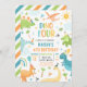 Convite Dinossauro Quatro Rapazes T-Rex 4ª Festa de Aniver
