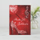 Invitaciones de fiesta de jubilación personalizadas, elegantes y personalizadas. Hermosas invitaciones de doble cara en rojo, plateado y blanco con una bola de espejos disco retro funky, glamorosa imagen impresa de pedrería / diamantes brillantes, lentejuelas, joyas, tacones altos brillantes, zapatos de tacón alto y notas musicales brillantes / notas musicales con destellos sobre un elegante rojo con luces blancas y fondo brillante. Invitaciones elegantes, lindas, femeninas y modernas con colores modernos y de moda. Estas invitaciones maravillosas, elegantes, sofisticadas y bonitas están decoradas / impresas en ambos lados. Invitaciones perfectas para una cena, baile y evento de baile. TENGA EN CUENTA: Todas las invitaciones en Zazzle tienen imágenes impresas planas. Si necesitas ayuda para personalizar tu producto por favor contáctame a través de mi tienda y estaré encantado de ayudarte.